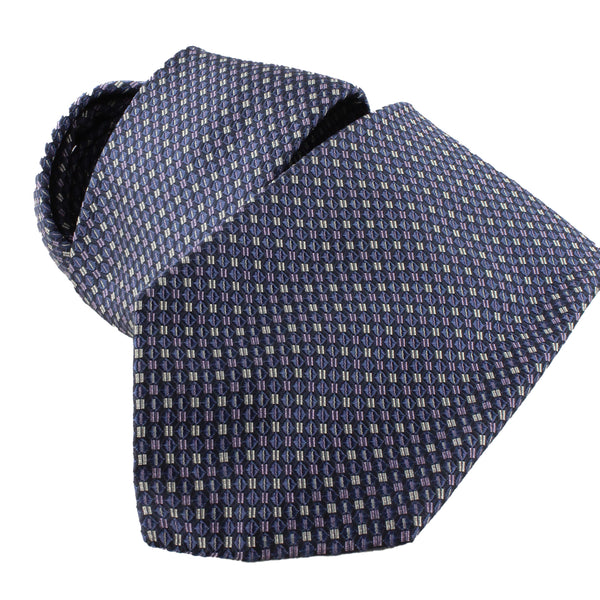 Dunhill Geometric Patterned Woven Silk TieColour: Dark steel blue, pale pink and pale greyMaterial: 100% silkBlade width: 8 cmDunhill woven silk tie in a geometric pattern