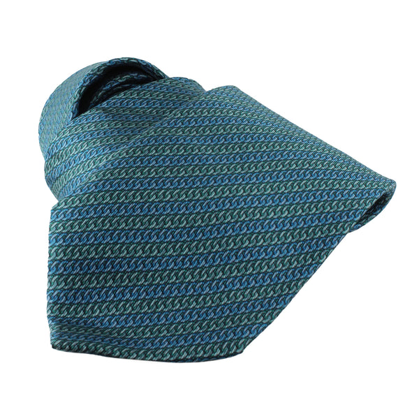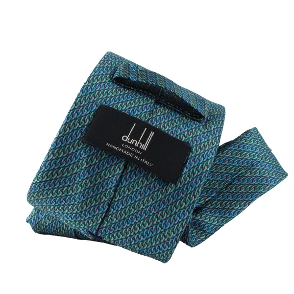 Dunhill Curb Chain Patterned Silk TieColour: Teal tonesHandmade in ItalyMaterial: 100% silkBlade width: 8 cmDunhill silk tie in a curb chain pattern