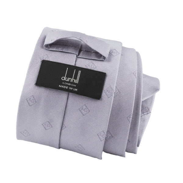 Dunhill Repeat Monogram TieColour: Pale lilac greyMade in the UKMaterial: 100% silkBlade width: 8 cmDunhill silk tie in a repeat monogram pattern