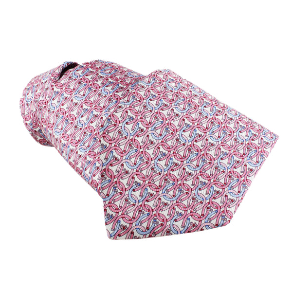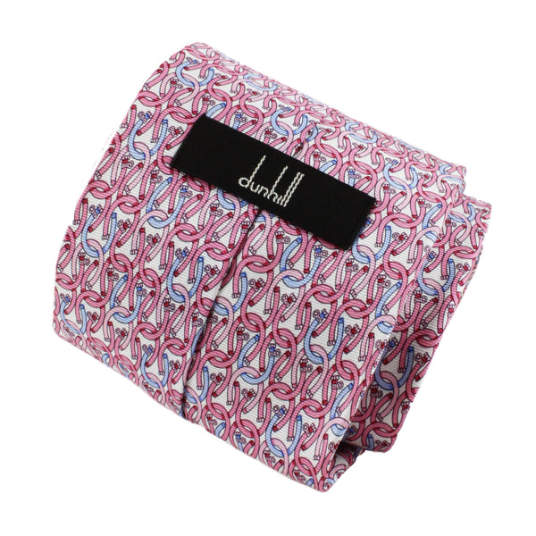 Dunhill Horseshoe Pipe Patterned Silk TieColour: Pink tones and blueMade in ItalyMaterial: 100% silkBlade width: 9 cmDunhill horseshoe shaped pipe patterned silk tie