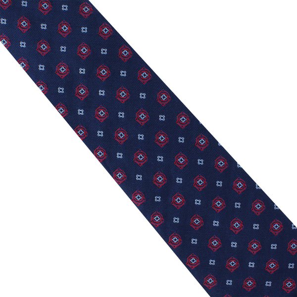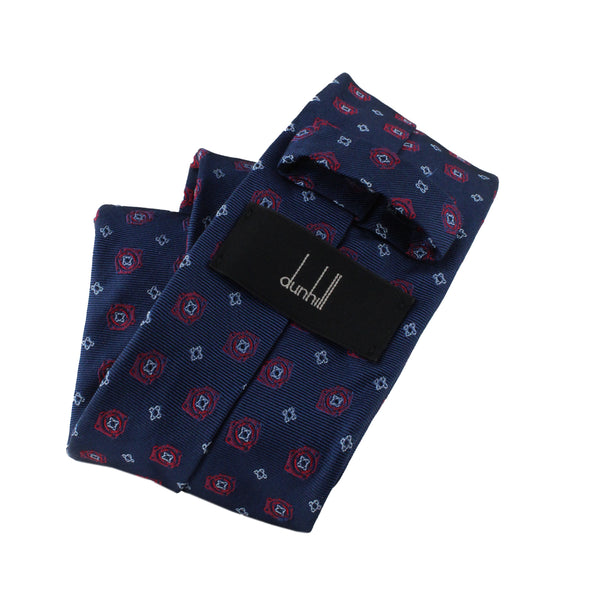 Dunhill Gasket Pattern Silk TieColour: Navy blue, claret and pale blueMaterial: 100% silkBlade width: 7 cmDunhill woven silk tie in a gasket pattern