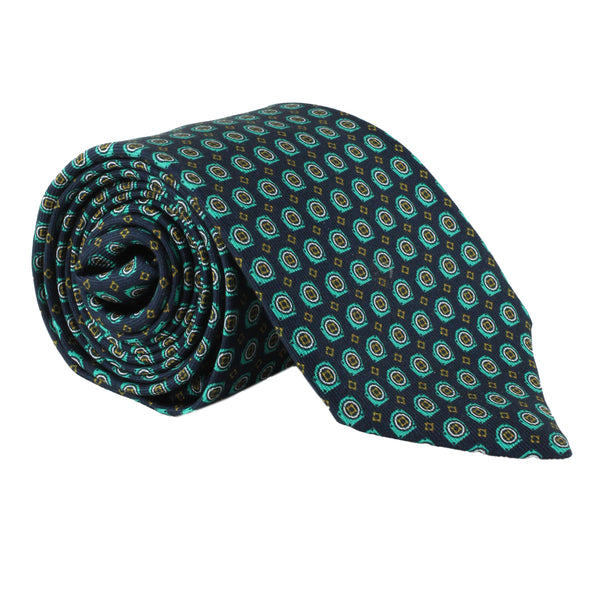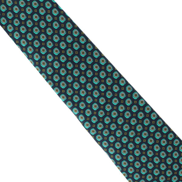 Dunhill Gasket Pattern Silk TieColour: Ink blue, green, sage and whiteMade in ItalyMaterial: 100% silkBlade width: 7 cmDunhill silk tie in a gasket pattern