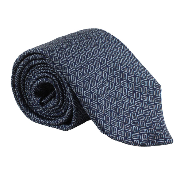 Dunhill Harness Buckle Patterned TieColour: Ink blue and dusky blueMade in ItalyMaterial: 100% mulberry silkBlade width: 8 cmDunhill mulberry silk tie in a harness buckle pattern