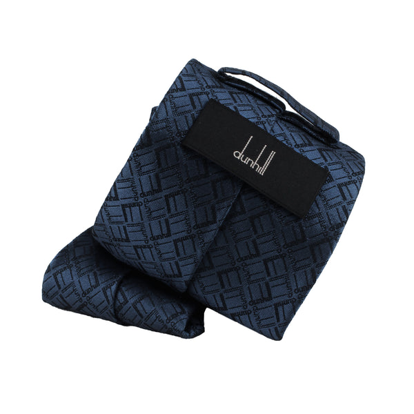 Dunhill Longtail TieColour: Navy blue and greyMade in ItalyMaterial: 100% silkBlade width: 8 cmDunhill luxurious silk tie in a longtail logo pattern with contrasting colour to blade