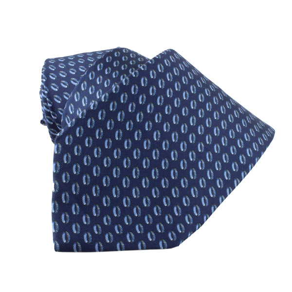 Dunhill Transmission Ring Patterned TieColour: Navy and blue tonesMade in ItalyMaterial: 100% mulberry silkBlade width: 8 cmDunhill silk tie in a transmission ring pattern