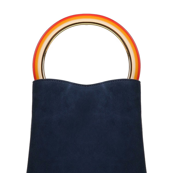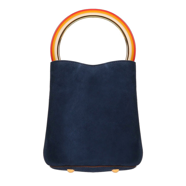 Marni Pannier bucket bag in a dark navy suede finish