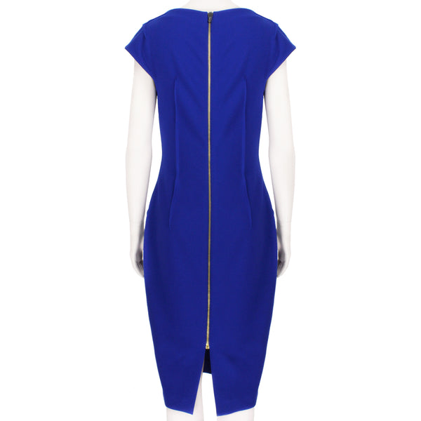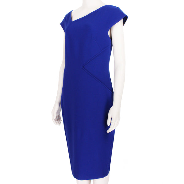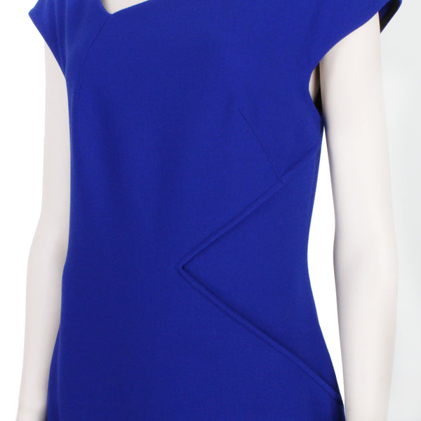 Roland Mouret asymmetric shift dress in a cobalt blue crepe fabric